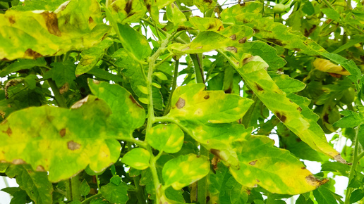 Жаркая, а затем влажная погода спровоцировала появление альтернариоза томатов в теплице. Появились характерные жёлтые пятна на листьях. Многие, увидев такие пятна на листьях томатов, считают, что они заболели фитофторой. Однако, это совершенно другое грибное заболевание - Альтернариоз. Альтернариоз, или сухая пятнистость, возбудитель — гриб Alternaria solani. Поражает все растения семейства пасленовых: томаты, баклажаны, картофель... В основном гриб поражает листья растений. Пораженные листья преждевременно желтеют и отмирают...