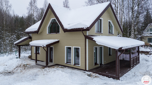 Недавно завершился III этап стройки на нашем объекте Керро 4, двухэтажный дом из газобетона общей площадью 173.4 м2 (по внешним габаритам) подготовили к чистовой отделке, провели фасадные работы. Внешние габариты по фундаменту – 8.10*10.70 м + терраса 3*8.1 м и автонавес 4.5*8.1 м. Основной угол крыши дома – 35 º, кукушка – 50º, навесы – 16º. Перед тем, как мы приступим к изучению дома, сразу отмечу, что с цветом наличников, внешних откосов и углов вышла оплошность – материал приехал не того цвета, который планировался...