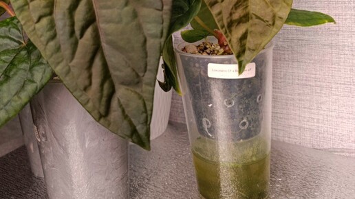 Фитильный полив, он же “нижний автополив” - просто один из методов увлажнения субстрата, помогает поддерживать постоянный уровень влажности в горшке. Представляет из себя конструкцию из горшка (вставки) с фитилем (шнуром, нитью), опущенным во внешнее более высокое кашпо, в котором всегда находится вода или раствор с удобрением. Обязательно ли алоказиям нужен фитиль? Совсем нет, хорош любой способ, который будет вам удобен. Фитиль удобен тем, что обычно воды в кашпо хватает надолго, что сокращает время, затрачиваемое на полив...