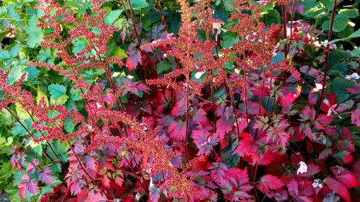 Сейчас, когда всё увядает, усыхает, и постепенно отмирает, эта Астильба притягивает взгляд. Это настоящее яркое пятно. Когда много цветения, растение не особенно видно, но сейчас - вау. А это ещё и не пожелтели зелёные участки её листьев. Я обожаю Колор Флеш, но у нее есть некоторые особенности. И самая основная - отсутствие центрального корневища. Если у всех астильб в почве образуется мощное корневище с почками, то у Колор Флеш куст разрастается по другому. Её не возможно поделить, как другие - разрезать...