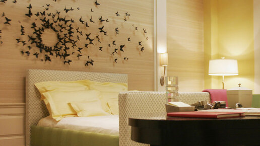 Тем, кто когда-то следил за героями популярного американского сериала «Сплетница», не хуже чем за «Игрой престолов», наверняка помнит эту девичью спальню, главным украшением которой стала инсталляция из бабочек. Автор этой инсталляции - американский художник Пол Виллински, который из старых пивных банок, виниловых пластинок и фольги создал очаровательных хрупких бабочек. Каждая деталь инсталляции прикреплена к стене при помощи проволоки, поэтому, когда в помещение проникает легкий ветерок из приоткрытого окошка, бабочки словно оживают...