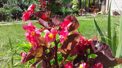 В этом сезоне юный садовод знакомился с бегонией. И из всех трех видов бегонии, что были заведены в хозяйстве по весне "на пробу пера и грабелек", только одна бегония вела себя в саду так, что заслужила безоговорочного сохранения черенкованием. У меня было два сорта этой гибридной бегонии: Megawatt Rose Bronze и Dragon Wing. Поскольку в предках у этой бегонии бегония вечноцветущая, то на все лето ее цветения и хватило. Ни дня без цветочка. И дождь ей не дождь, и жара не жара. Сажала я их не сказать, чтобы в идеальные условия...