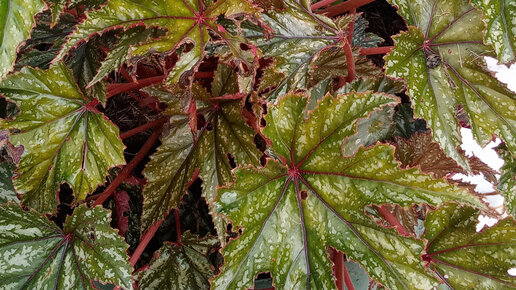 Для меня бегонии – это уличные цветы. Дома я только устраиваю им передержку, задвигая в самые ненужные углы. Так и с этой бегоний, хотя я часто вижу ее в продаже, как комнатное растение. Мне она чем-то напоминает бегонию королевскую, помните, были такие огромные лопухи, в школе, в каждом классе стояли. Только листья у них были зеленые. Я покупала как обычно семенами. Высевала их вместе с остальными бегониями, где-то в феврале. Из пяти семечек взошли только три, но как оказалось, и их было более чем достаточно...