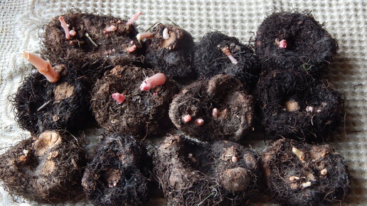 Клубни бегоний, о работе с которыми я подробно рассказывала в прошлом сезоне, неплохо сохранились в подполье. Вчера я достала их вот такими проросшими, они даже не нуждаются в пробуждении. Поэтому минуя этот этап, я приступаю к их подращиванию в рассадных горшках. В первую очередь делю на две части некоторые из клубней острым ножом, присыпаю разрезы толчёным углем и оставляю подсохнуть - сажать их буду в последнюю очередь. Затем я заполнила рассадники грунтом немного больше, чем наполовину. В...