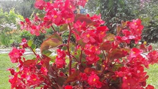 На отмостке дачного дома ярким костром пылает бегония. Ее замечают все. И часто спрашивают подробностей об этом "чуде". А я все не исполняю подробностей. Думала - год назад же уже писала, а вот и ссылка. Ан нет. Заглянула в фотоархивы и действительно - год назад эта бегония не была у меня столь шикарной. Потому что ошибка на ошибке и ошибкой погоняла. И когда я исправила явные "косяки" - вот и случался в контейнерном саду впечатляющий результат. Однако я не могу присвоить себе все лавры. Потому что рассада - не моя...