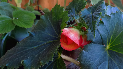 Вторая бегония всё таки не пересортица. В бутоне проглядывает желтый свет. И значит, это бегония "Санглоу". Кустик компактный, побеги не вытягиваются. Листва сочная, тёмная. И на макушке гнездятся красивые, пухленькие бутоны...