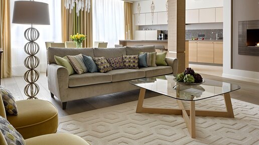 Лучшие интерьеры гостиных в бежевых тонах из нашего портфолио