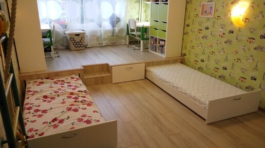 Добрый день, дорогие читатели! Наверно в каждой семье есть такая проблема, как оформление детской. А когда у тебя двойняшки - то обязательно все должно быть одинаковым, иначе криков и ссор не избежать. Недавно у нас осуществилась мечта - мы переехали в новую 3-х комнатную квартиру. Но возникла проблема с оформлением детской. Дело в том, что у меня двое сыновей - двойняшек (им по 5). И у них обязательно все должно быть одинаковым. Сначала мы хотели поставить двухъярусную кровать. Но тут детки начали делить кто где будет спать...