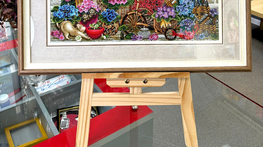 Со вчерашнего дня думаю, как бы интересно презентовать оформление в багет самой большой и времязатратной моей вышитой работы... Ничего достойного в голову не приходит, поэтому... просто... встречайте - мои оформленные фиалки от "Марьи-искусницы" !!! Вышивала этот набор ровно год назад, все этапы от начала и до конца можно увидеть в вышивальных неделях - там из недели в неделю мы наблюдали на канве прирост в крестиках и развитие сюжета. Напомню, что в базовой комплектации набора лежит канва Цвайгарт 16 каунта, но я решила уменьшить размеры работы и заменить канву на 18 канут...