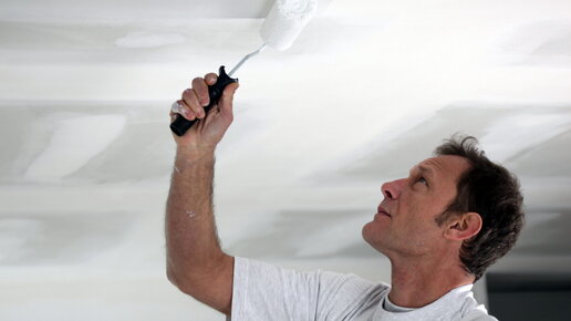 Необходимо тщательно подготовить окрашиваемую поверхность потолка, иначе покраска будет иметь полосы или отдельные пятна...