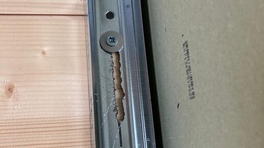 Несмотря на кажущуюся простоту задачи, придумать оптимальное решение было не так-то просто! Я перерыла Интернет, учиталась тематических форумов, но в итоге мы опять придумали свой вариант. Напомню, наш дом построен из клееного бруса, а это значит, что гипсокартонные перегородки при стыковке с брусовкой стеной нужно ставить на специальные крепления - их в простонародье называют "скользячки". Идея в том, чтобы при усадке деревянных стен шуруп на профиле двигался по продольному отверстию вместе со стеной...