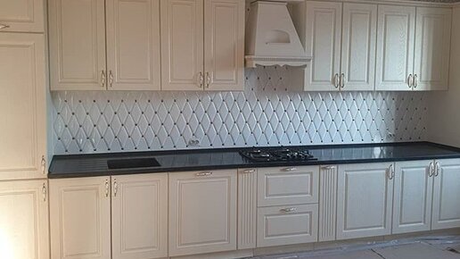 Белая классическая кухня с черной столешницей