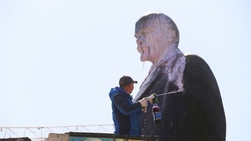 В Барнауле помыли памятник Ленину после ремонта постамента. Фоторепортаж