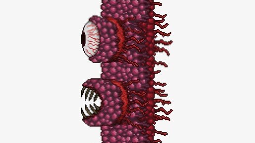 Этот босс своеобразный "проводник" из обычного режима в хардмод. Уникальность противника в том,что если его призвать ,то стена не остановится пока не дойдёт до конца мира или не будет уничтожена. Имеет два и стреляющих лазерами глаза,и рот,создающий помощников,также стена имеет 2 десятка отростков наносящих урон. Прикосновение к боссу-смертельно. Тактика Если у вас есть летающий предмет-пролистывайте этот пункт,если нету то читайте...