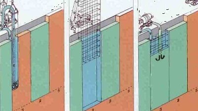 Метод «стена в грунте» является вариантом траншейного способа работ по строительству подземных сооружений. Суть траншейного метода в общем и целом сводится к тому, что в трудных условиях, например при наличии вблизи строящегося объекта какого-нибудь здания, которое необходимо сохранить, сооружают глубокую траншею (котлован, глубина которого много больше его ширины), в которой возводят тем или иным образом несущую конструкцию (стену), которая будет удерживать от обрушения котлован, в котором уже будет строиться сам объект...