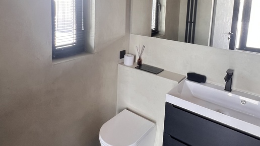 Микроцемент в ванной и мокрых зонах: стиль, практичность и долговечность.