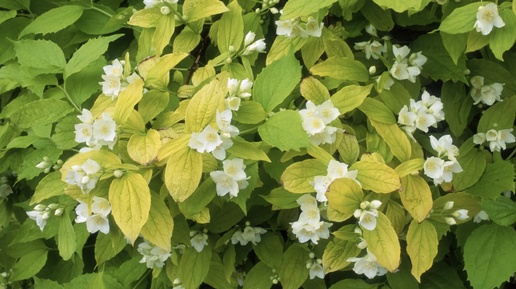 Чубушник венечный Ауреус. Желтолистный обильно цветущий кустарник. Philadelphus coronarius Aureus