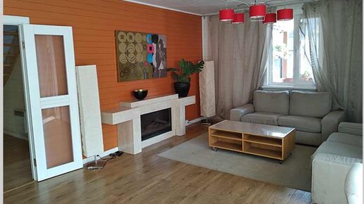 Невероятно красивая гостиная с камином, огромным диваном и искусством на стенах. Как это все подбирала хозяйка?