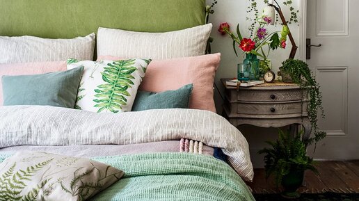 Зеленый цвет – это не только о садах. Он может освежить и смягчить любое пространство. Оттенки зеленого особенно подходят для интерьера спальни, где должно быть комфортно и отдыхать, и наполняться энергией. 1. Природные мотивы Растительные орнаменты наполняют спальню свежестью природы. Как если бы каждое утро вас встречали первые бутоны весны. Сочетайте романтичные весенние оттенки зеленого с серо-голубыми, нежно-розовыми и светло-коричневыми природными тонами. Не бойтесь сочетать и смешивать цвета, напоминающие загородный сад...