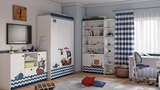 Морской стиль пользуется большой популярностью, ведь все, что связано с морем, и у взрослых, и у детей вызывает самые приятные ассоциации и открывает безграничный простор для фантазии. Также этот стиль подразумевает использование прекрасной цветовой палитры. Не обязательно обращаться к помощи дизайнеров — вдохновение вы можете взять из книг, семейных путешествий или игр Вашего любимого мечтателя. Вы можете создать морской интерьер двумя способами. Первый – использовать тематическую мебель, например, кровать в виде корабля...