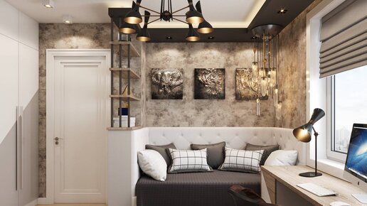 Создавая интерьер для подростка, нужно учитывать его вкусы и желания. Ведь это уже самостоятельная личность, которой нужно самовыражение. Свежий и лаконичный дизайн-проект покорит вас своей натуральностью и спокойствием. Интерьер комнаты выполнен в современном стиле. Пастельные тона, натуральные экологичные материалы и легкие текстуры. Обои на стенах напоминают рельеф песчаных барханов, которые гармонично балансируют колористику дизайна интерьера комнаты. Лаконичные и стильные закрытые системы хранения не утяжеляют пространство, при это все нужное находится под рукой...