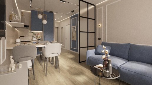 Дизайнер Askona Home разработала планировку и дизайн-проект небольшой двухкомнатной квартиры для матери и дочери. За основу взяли современную классику, а в качестве акцента использовали сложный синий оттенок. Смотрите, что получилось. Пожелания заказчицы Заказчица — молодая девушка, которая переехала в новую квартиру вместе с мамой. В квартире предусмотрена спальня и кухня-гостиная. Клиентка хотела обустроить квартиру в стиле современной классики. В качестве основы цветовой гаммы заказчица выбрала нейтральные бежевый и серый цвета...