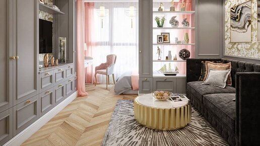 Нужен современный дизайн детской на двоих разнополых детей? Вам наверняка придется по вкусу наш новый проект с двумя спальнями! Оригинал статьи - здесь Первая из них оформлена в роскошном кофейно-пудровом оттенке с множеством оригинальных декорирующих вещиц. Стильная кроватка с настенной инсталляцией в виде домика оптимально вписывается в общую концепцию. Подкроватное пространство можно использовать для хранения игрушек в оригинальных ящиках. Лаконичный столик на изящных ножках дополнен узким выдвижным ящиком...