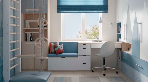Мебель в голубых тонах в детскую комнату мальчика