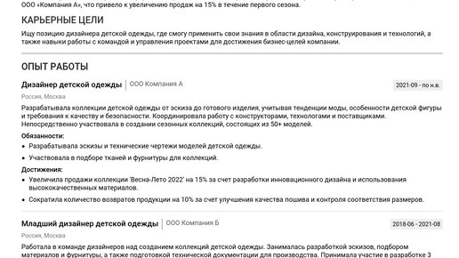 Пример резюме дизайнера детской одежды 2025 - Как составить
