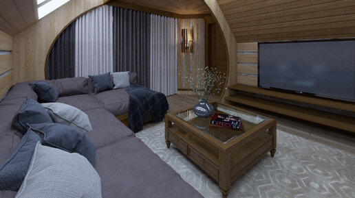 КАПСУЛА ВРЕМЕНИ Хозяева этого дома площадью 100 кв. м — постоянные клиенты ITER-Design, очень творческая пара, с которой у нас царит полное взаимопонимание. Проект предусматривал рестайлинг всего дома, в который они приезжают только летом. Особого внимания заслуживает гостиная-холл, которая расположена на втором этаже. Проект её дизайна получил название «Капсула времени» за свою необычность и футуристичность. Главным элементом, задавшим тон всему помещению, стала наклонная плоскость, которая расположена за телевизионным экраном...