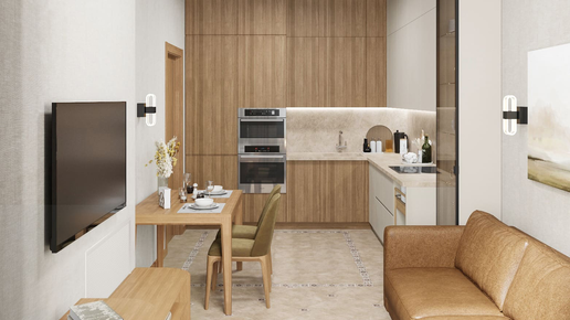 Дизайн-проект двухкомнатной квартиры с акцентом на натуральное дерево - тренд 2025