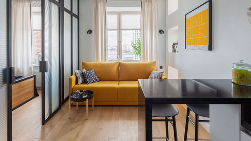 Мария Безрукова спроектировала интерьер в ЖК Wellton Park. Заказчики просили, чтобы маленькая квартира была  уютной, функциональной и необычной, несмотря на скромную площадь — 32 м².