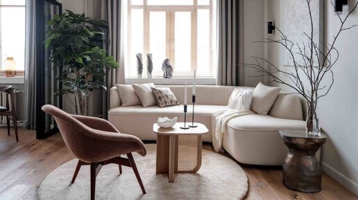 Этот интерьер небольшой квартиры площадью 49 м² выполнен в экостеле. Автор этого красивого интерьера в доме 1960-х годов постройки — Анна Васильева, основательница бюро Couture Interiors. Основная идея — сочетание мягких оттенков, рустикальной деревянной отделки и графичных темных акцентов. Понравилась статья? Ставьте лайк и подписывайтесь на нас, чтобы видеть наши обновления! Больше интересного про недвижимость, архитектуру и интерьер на нашем сайте architectguide...