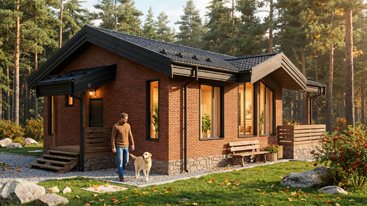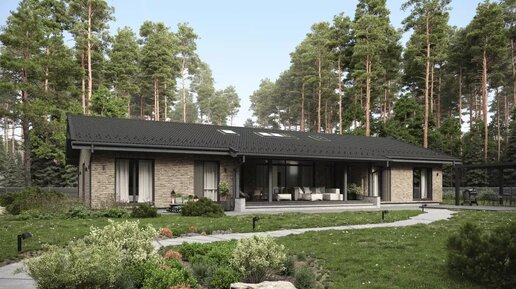 🏠Проект одноэтажного шестикомнатного каркасного дома в современном стиле