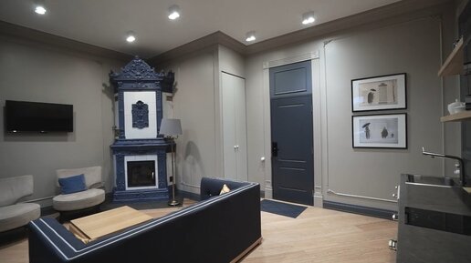 Сегодня я решил предоставить твоему вниманию довольно интересный дизайн однокомнатной квартиры с очень высокими потолками, оформленной в классических, серых тонах.