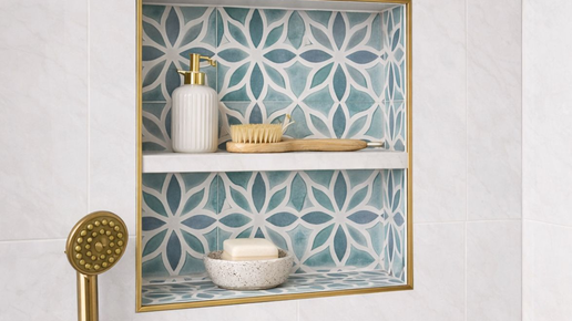 Современные ванные всё чаще проектируются как камерные интерьерные сцены. Плитка, мрамор, панно и обои становятся носителями художественного языка. Ниже — разбор ключевых декоративных приёмов. Декоративная плитка с восточным орнаментом формирует «зону внутри зоны»: душевая читается как отдельная архитектурная вставка, почти как керамическая ниша-хаммам. Орнамент концентрируется внутри кабины, создавая эффект ковра на стене, тогда как окружающие плоскости остаются нейтральными. Натуральный мрамор вокруг усиливает контраст — сложный рисунок орнамента работает на фоне спокойной каменной текстуры...
