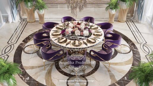 Столовая-гостиная — основная общественная зона в интерьере элитного загородного дома и квартиры, дизайн которой должен быть поистине роскошным. Как выглядят ультрамодные дизайнерские проекты таких помещений? Рассказываем на примере новинок из нашего портфолио! 1. Лиловые акценты 🔗 ПОДРОБНЕЕ О ПРОЕКТЕ Сочные лиловые акценты, в роли которых выступают мягкие обеденные стулья с обивкой из благородного велюра, — лучший выбор для светлого интерьера с золотистым декором и зеркалами. Продолжают сиренево-лиловую...