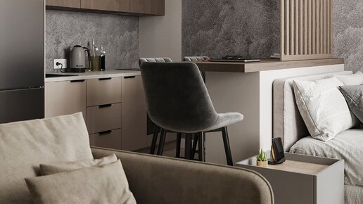 Стильно и нескучно: классный монохромный дизайн в квартире-студии 29 кв. м для молодого студента