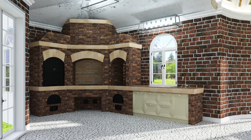 - Зона печи с мангалом для приготовления блюд на открытом воздухе...