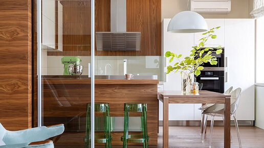 Отделка деревом, открытая терраса и сад с гортензией: интерьер таунхауса в Чебоксарах