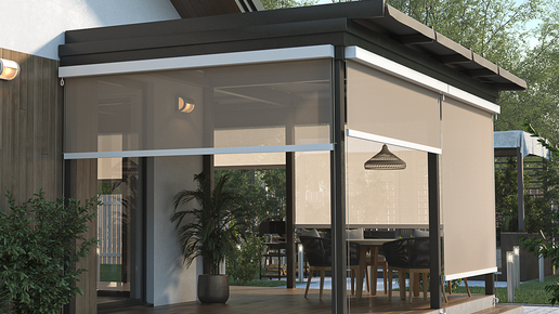 Мы привыкли видеть рулонные шторы внутри помещения: на створках окон и закрывающих проемы. Но существуют и модели рулонных штор, которые предназначены для установки и эксплуатации снаружи помещений.