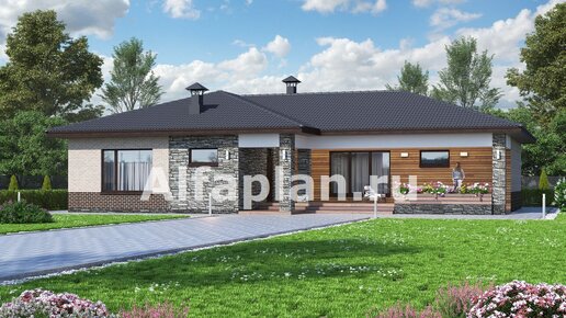 Одноэтажный дом с лаунж зоной на большой террасе - проект 681А - 166 м2, 3 спальни, сауна