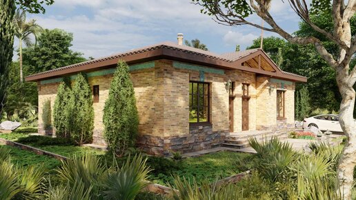 БАТАЙСК - укороченная вариация популярного проекта АКСАЙ. Длина базового дома 14 метров + терраса, БАТАЙСК меньше в длину на метр, размером 13х13, полностью квадратный и без террасы, что делает его простым в строительстве. ПЛАНИРОВКА Дом 4-комнатный, рассчитан на проживание семьи из 6-8 человек. Середину дома занимают входная группа (прихожая, холл и котельная) и гостиная со столовой и выходом в сад. Столовая смежная с кухней (которую можно выделить в изолированное помещение). Справа от входа - две детских с душевой...