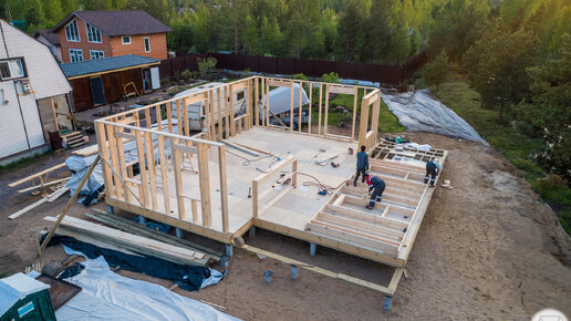 Каркасный дом 11*11 на бетонных сваях: платформа и первые стены | Пирог перекрытия, гильзы, утепление | Строим каркасник в Пробе (Л.О.)