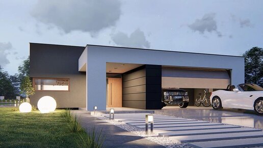 Проект стильного одноэтажного дома в стиле хай-тек с 3 спальнями и гаражом на 2 машины - 192 кв.м.
