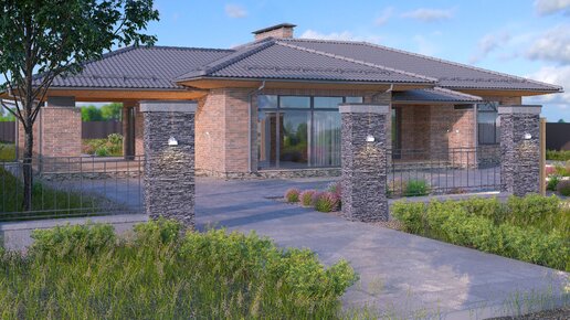 В данной статье представлен типовой и классический проект одноэтажного жилого дома в стиле Райта из кирпича. 3 спальни с расположением в виде клеверного листа. Гигантский общий блок кухни с гостиной и зоной столовой в эркере. Изюминкой и необыкновенностью - является выход на вторую террасу из постирочной-котельной, а с другой стороны из спальни...