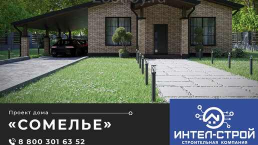 ✔ Ширина фасада дома, м: 10 - без учета навеса для авто