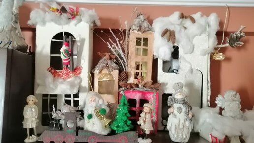 Всем здравствуйте! Вот про новогодние носочки я уже рассказывала, теперь расскажу, как моя подруга украшает свой дом! Дом у неё большой, 2 этажа, мансарда и терраса возле дома! И камин у неё тоже есть, это так к слову! Носочки она правда, вешает не на камин, а так рядом! Но мне больше всего нравится, как она украшает дом домиками! Она сделала их сама из картона и покрасила в белый цвет! К слову сказать, она любит рукодельничать, но ее рукоделие относится к поделкам из природных материалов. Вот любит человек! И в доме у неё такие же природные цвета, терракота, коричневый...