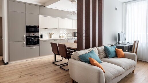 Содержание: Современный классический стиль имеет несколько вариаций исполнения. Одни из новых трендов – сочетание современной легкости и минимализма. Креативный дизайнер интерьеров Екатерина Жибер осовременила классические элементы и добавила более ярких деталей из дерева, позволив привычным мотивам зазвучать по-новому. В результате интерьер компактной городской квартиры вышел функциональным и наполненным стильными решениями. На этапе реализации дизайн-проекта подключилась команда компании «СВОЁ»...