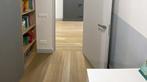 Наши двери и паркет в интерьере квартиры! Как вы видите на фотографиях — проект интерьера уже реализован и можно посмотреть финальный вид. Сюда мы изготовили и установили двери со скрытым коробом. Он монтируется на этапе возведения перегородок и впоследствии не виден, так как спрятан за чистовой отделкой стен. Полотна дверей выполнены в минималистичном дизайне, без дополнительных элементов декора. Они покрашены в цвет по заданному коду RAL, в оттенке согласно пожеланиям заказчика. Такое решение позволяет добиться лаконичного дизайна, что особенно актуально в современном интерьере...
